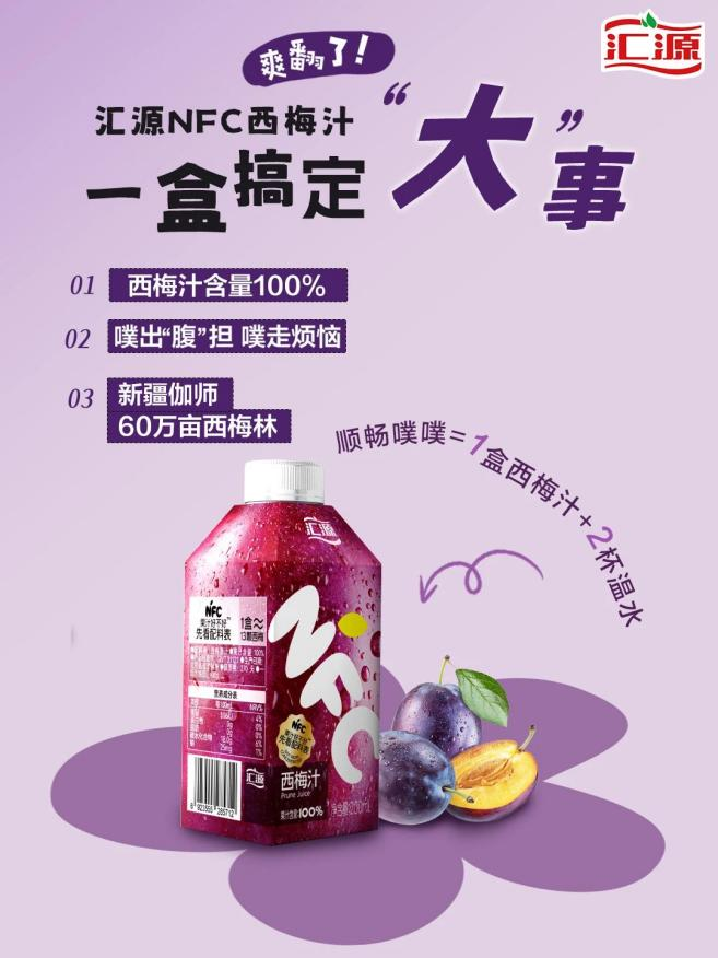 截至目前,新疆匯源新梅產業發展有限公司總投資達10億元,年加工能力突破10萬噸,配置NFC果漿、濃縮汁、烘干等進口生產線,全面落實從西梅鮮果、西梅果干、西梅濃縮果汁、西梅原漿、西梅原汁等在內的產品加工與銷售。其中匯源西梅干、西梅汁暢銷于全國各地,覆蓋商超、餐飲、商場、電商等多元渠道。