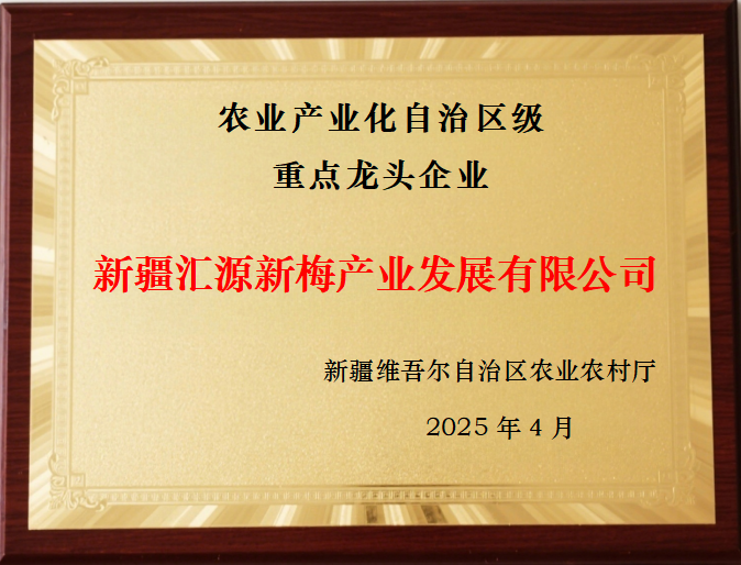 近日,新疆維吾爾自治區農業農村廳公布《2024年自治區農業產業化重點龍頭企業名單》(以下簡稱名單),新疆匯源新梅產業發展有限公司光榮上榜,獲評“農業產業化重點龍頭企業”。